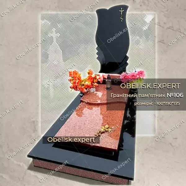 Комбінований оригінальний пам’ятник з червоного та чорного гранітів.