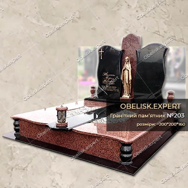 Комбінований подвійний пам’ятник з червоного та чорного гранітів.