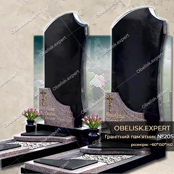 Комбінований пам’ятник з червоного та чорного гранітів.